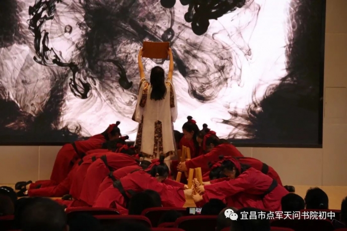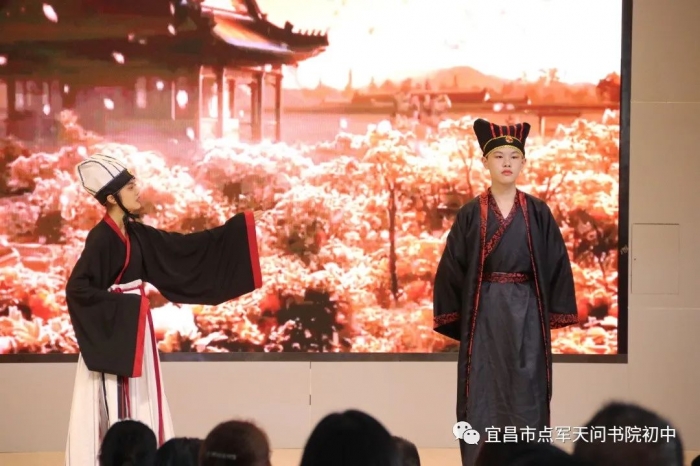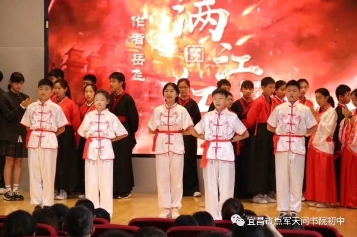 七八年级的同学们展示了大国学、大阅读、大社团课程中形成的成果,课本剧《屈原》、诗词朗诵《金戈铁马》、合唱《小池》,展现了书院学子的风采,现场气氛热烈,掌声经久不息。