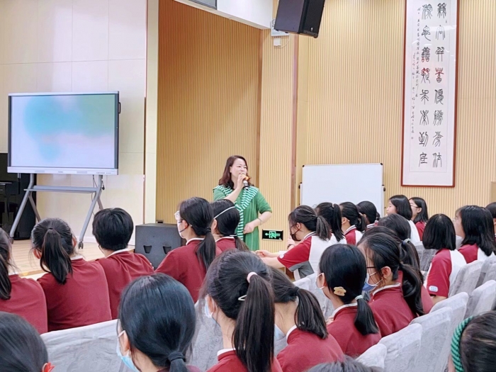 本次讲座以“给新初女孩的成长课”为主题,由集团董事伍月铭老师主讲。
