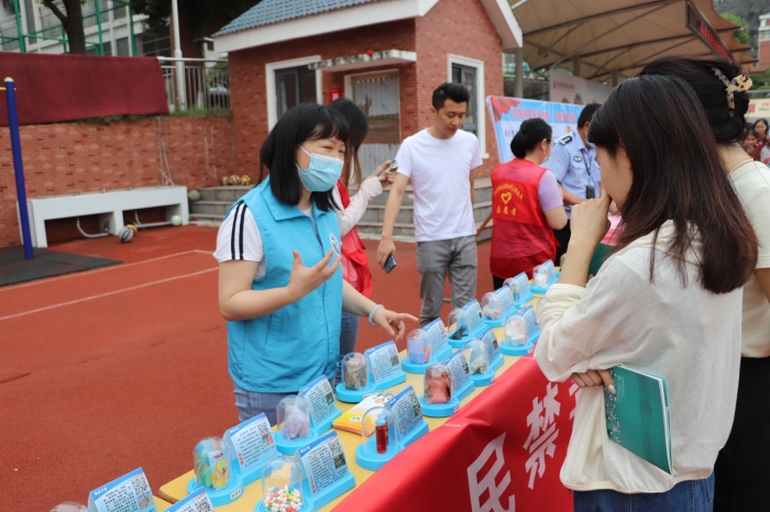 东苑街道禁毒工作人员为同学们发放禁毒宣传手册,展示了常见的仿真毒品,通过讲解、提问、解答等互动方式,让同学们了解了毒品的种类、毒品的危害性以及毒品的“伪装和陷阱”,强调了防毒、禁毒的重要性,进一步提高了学生们毒品的辨识能力和毒品侵害的防范意识。