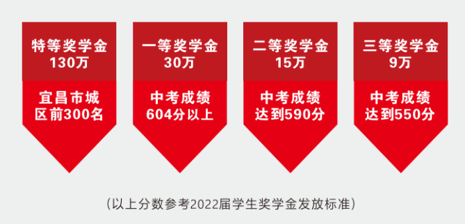 天问国际高中百万奖学金助力宜昌学子圆梦世界名校。特等奖学金130万,其中国高奖学金30万大学奖学金100万;一等奖学金30万,二等奖学金15万,三等奖学金9万。