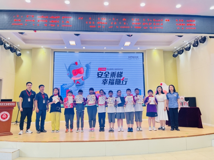 日立电梯安全讲师为学生们带来一堂专业的电梯安全知识讲座,通过现场演示电梯运行原理、电梯安全注意事项的动画视频的方式讲解了电梯安全知识,指导学生正确使用电梯。为活跃现场氛围,安全讲师还设置了有趣的互动游戏、“有奖问答”、知识测验等,通过小游戏的方式进行学习巩固和知识测验,让学生在轻松愉快的氛围中掌握电梯使用安全知识。