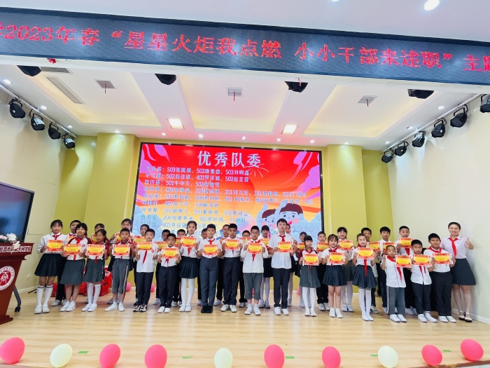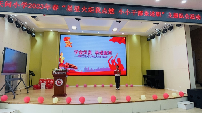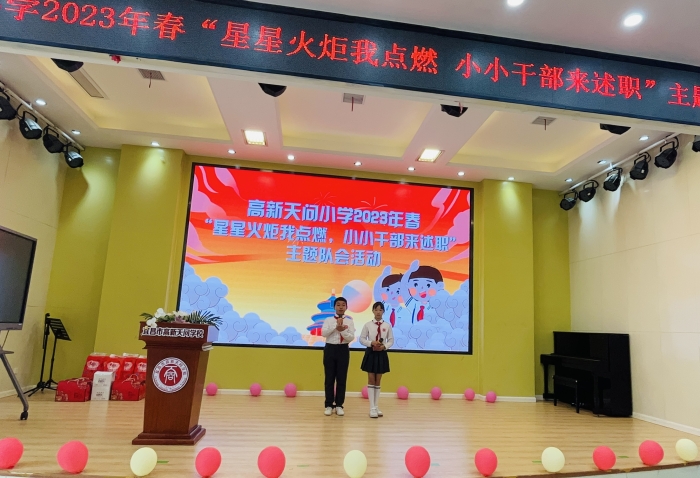 2023年6月15日,高新天问小学2023年春季少先队工作期末述职大会在报告厅隆重举行。