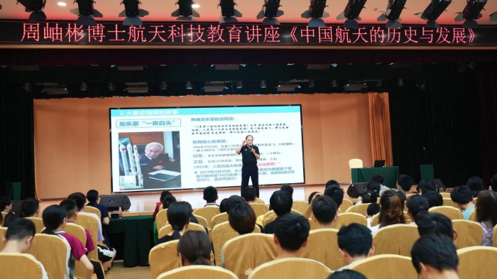 从嫦娥奔月到万户升天,从中国神话传说到祖国航天事业,周博士以渊博的知识,生动的展示,幽默的语言,真实的事例,让同学们认识了“航天”,了解了中国航天事业发展的艰辛历程,更体会到一代代航天英雄们坚韧不拔、自强不息的航天精神。