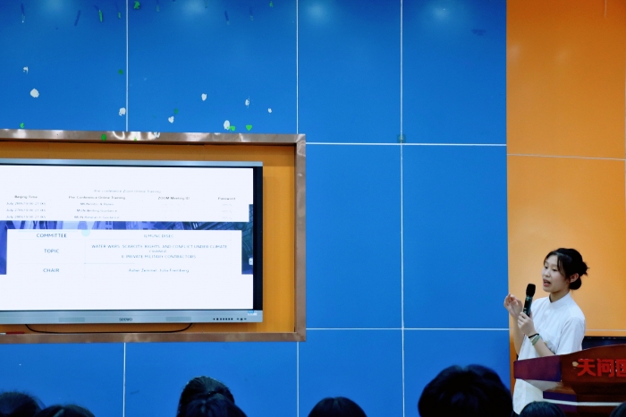 高二冯瑞涵同学分享了参加世界名校模拟联合国的经历,在与全国各地优秀学生的交流中,开拓眼界,提升能力,为未来的留学申校奠定了良好的基础。