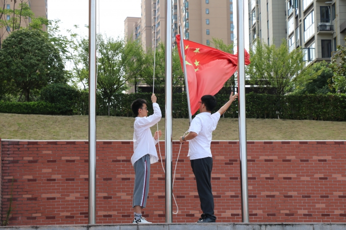 清晨,在香港学子和天问学子嘹亮的国歌声中,五星红旗在校园冉冉升起。