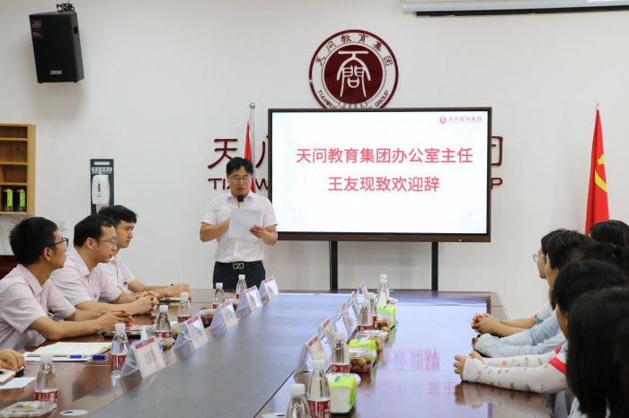 天问教育集团监事王友现对交流团一行表示欢迎。他说,希望以交流活动为契机,架起两地青少年的友谊桥梁,促进两地间的教育文化交流,筑牢两地青少年的中华民族共同体意识。