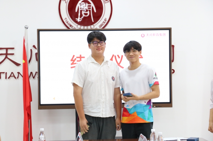 天问国际高中学生代表林子誉同学介绍天问教育集团发展情况。