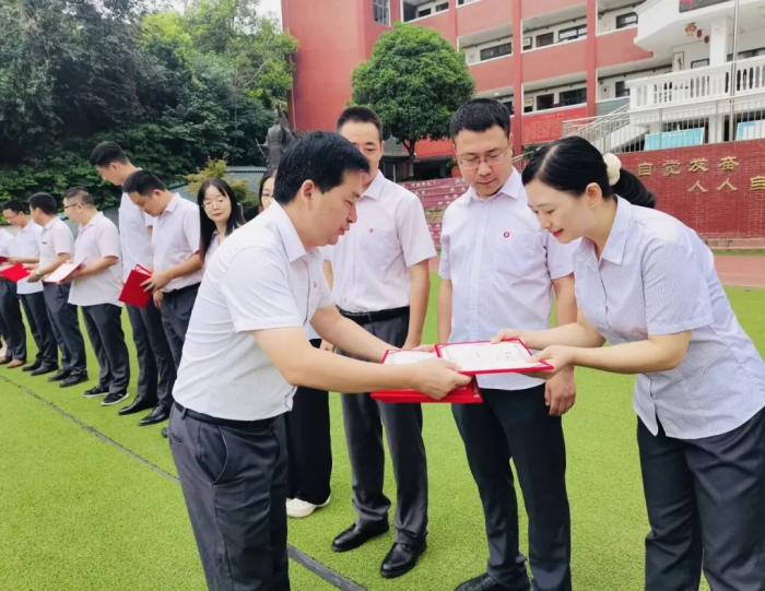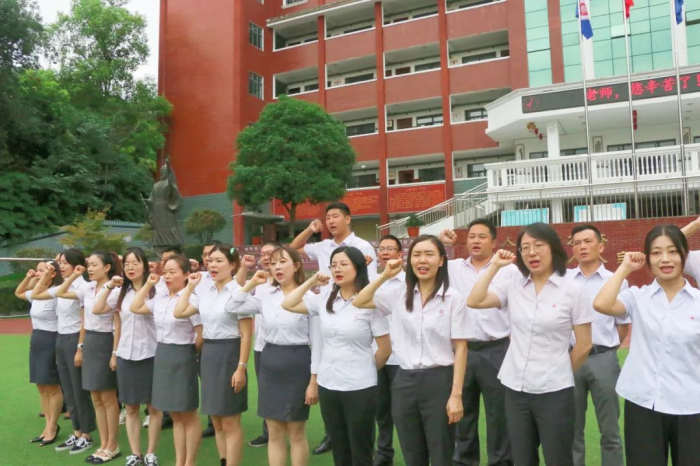 “忠于职守,精诚团结;言传身教,以身作则。脚踏实地,刻苦钻研;甘于奉献,激情燃烧。为你们保驾护航,为你们摇旗呐喊。与你们同甘共苦,与你们风雨同舟,再续辉煌!”伴随着一声声新一届九年级教师团队的铮铮誓言,相信天问书院会在他们的带领下续写出属于我们独一无二的天问故事,奋力描绘出天问教育集团振兴发展的新篇章!