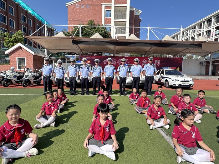 活动中,天问少年交警队进行交通安全手势操表演,高新天问小学学生共同学习了小型汽车盲区安全、交通安全标识等知识,参观警用器械,体验模拟酒精检测仪。