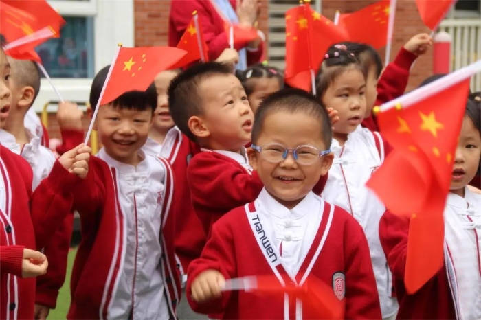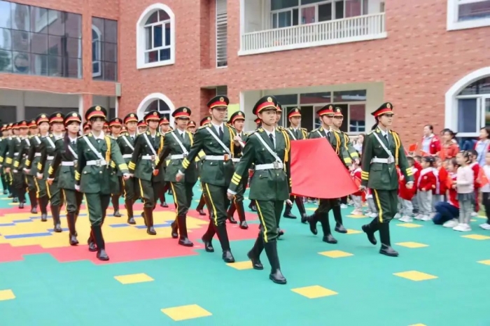 嘹亮的国歌响起,鲜艳的五星红旗冉冉升起!在全体师幼的注目下,高中国旗班大哥哥大姐姐昂首挺胸,神采奕奕的迈步前行。我们用庄严神圣的升旗仪式来表达对祖国的热爱,凝望着国旗,孩子们目光坚定,眼神里充满了自豪与骄傲!心中种下一颗爱国的种子,透露出对祖国妈妈无尽的爱意和尊敬。