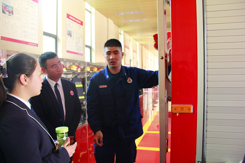 紧接着,同学们近距离地参观了消防车等消防工具器材和消防内务,观摩了消防救援演习。