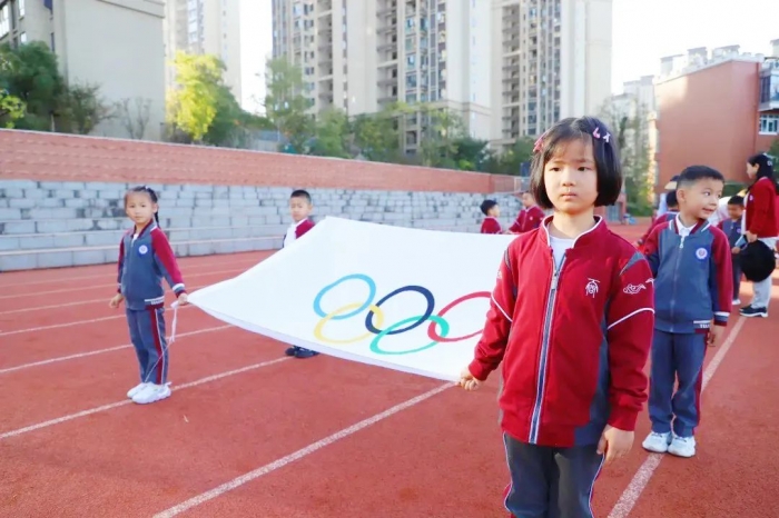 五环旗象征着凝聚着和平、友谊和团结的奥运宗旨,她涵盖着"更高、更快、更强"的奥运精神。希望在这次运动会上,小小运动员们能像五环旗一样,炫彩夺目。
