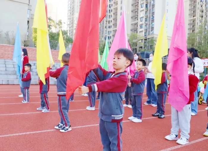 鲜艳的园旗,在灿烂的阳光中,指引着我们走向未来,她们手中牵起的不只是一面园旗,更是我园生机勃发,昂扬向上的力量之源。
