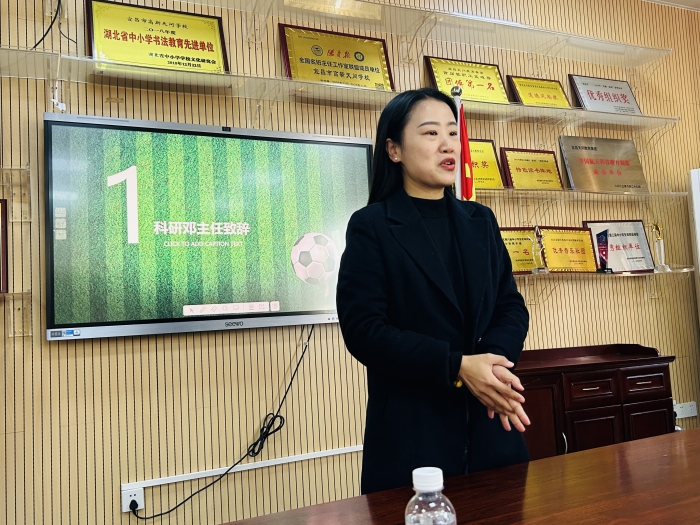 邓主任致辞,提出体育的重要性,希望各学部的老师不吝赐教,互学共研,探讨更多适合学生的教学方法,让学生真实受益。 教而不研则浅,研而不学则空。精彩课堂结束后,严老师进行说课,严老师阐述了自己的设计思路及课后的感悟和反思。 “钻研仰高,笃行致远” ,思维的碰撞才能擦出激励前行的火花。各小组老师也从各方面指出了课堂闪光点与自己的建议。 刘琴老师以“一体两翼,赋能师生成长”为主题做汇报分享,从学习新课标、学科活动、比赛、大课间、社团等方面全面的阐释了学校的体育工作。 活动最后,邹强老师肯定了本次联合教研活动,强调体育的重要性,关注体育的 “育”,提倡每节课渗透“育”的行为,并建议老师们多阅读书籍,让自己得到提升。 教研是一次灵魂的唤醒,也是一次诗意的修行,愿我们在唤醒中迈步,在诗意中同行,抱团成长,共研共学,齐步前行。