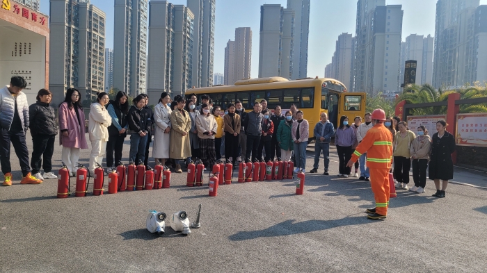 近日,夷陵天问校区组织教师进行消防培训,夷陵天问初中全体教师参加,并学习了灭火器的使用方法。培训现场,老师们亲自操作实践,并纷纷感叹:又get到一项新技能!
