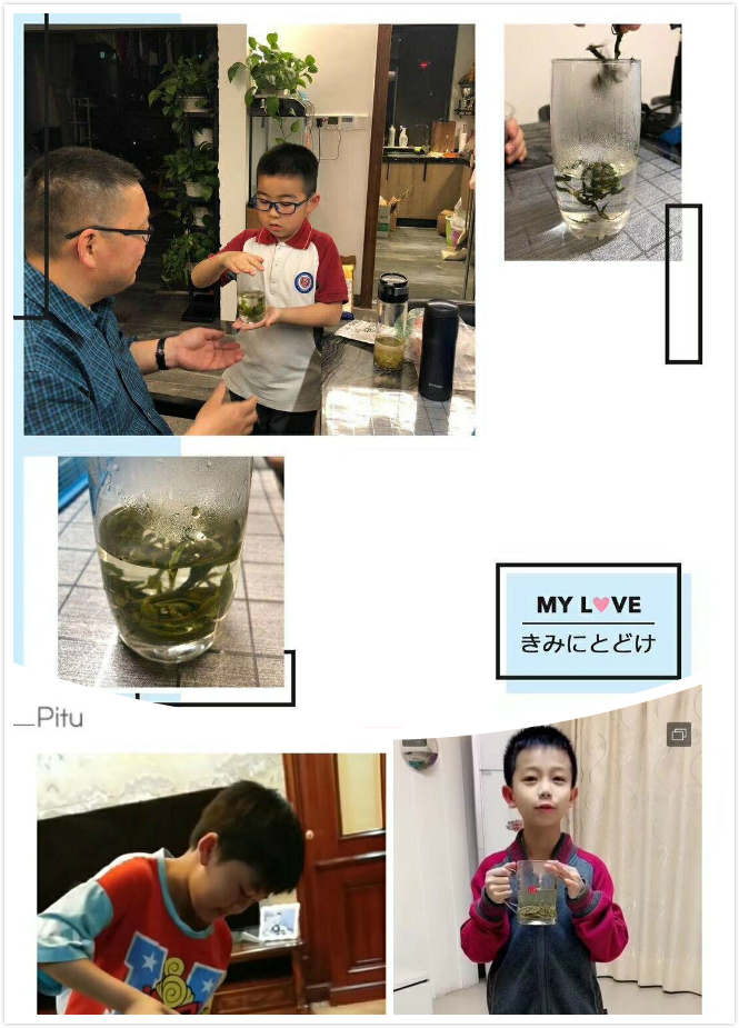 回家后,孩子们将亲手泡制的绿茶敬给家里的长辈,将中华民族的茶文化和孝顺美德传递下去。