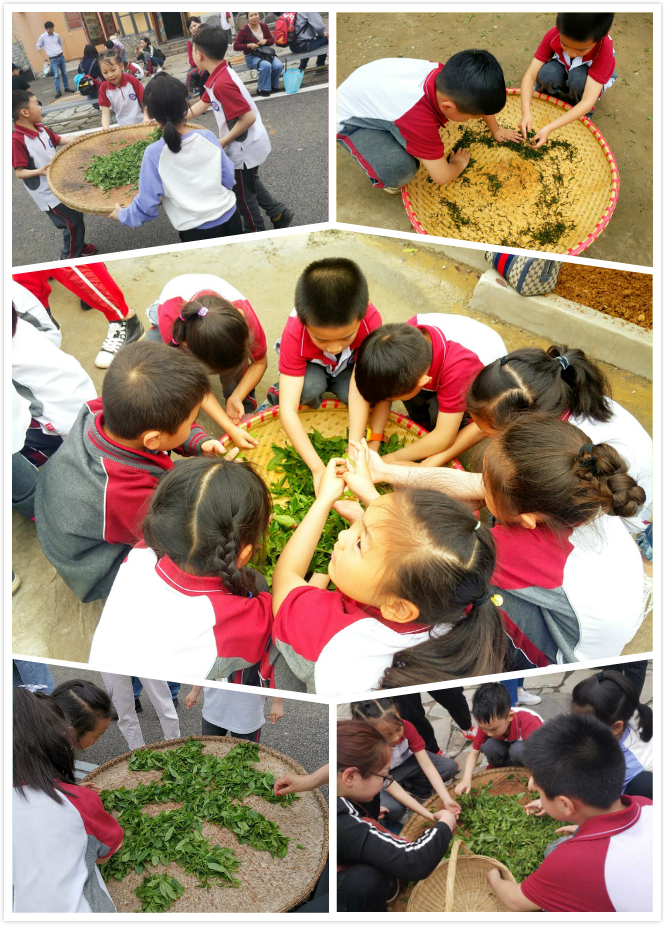 孩子们在导游的带领下,了解了有关茶文化的知识,并亲手体验了采摘—杀青—揉捻—晒干—蒸压—干燥等茶叶工艺制作流程。活动中,孩子们挎上小竹篓,前往茶园分组进行采茶,现场教师仔细讲解采摘茶叶的技巧与方法,随后孩子们结伴一起体验采茶的乐趣。