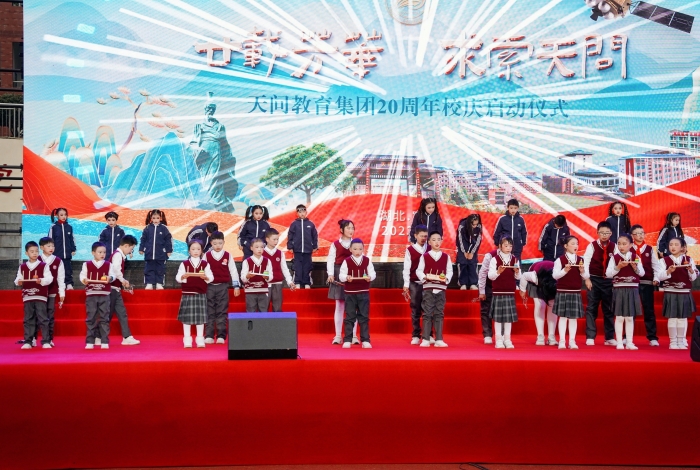 在这特殊的日子,高新天问小学以丰富多彩的活动祝贺天问教育集团廿载芳华、春风化雨、桃李芬芳!