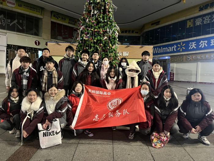 12月23日,清晨5点,天还没亮,天问国际高中志愿队在冬日的寒风中走到街头开展“暖冬行动”公益活动。
