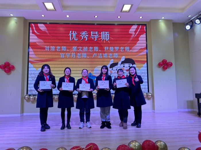 胡菲校长、德育主任刘利、教务主任张玉华、校办主任龚媛、科研主任邓俊玲为优秀队委、优秀部门、优秀导师进行表彰,颁发奖状及温馨的小礼物。相信这些受到表彰的优秀队委们,在优秀导师的带领下,一定会珍惜荣誉,把每一次获得的佳绩作为新的起点,不断发挥少先队组织的优良传统和拼搏精神,不断努力奋进,再创佳绩!