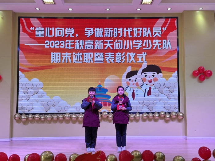 2024年1月11日,高新天问小学开展了2023——2024学年秋季学期少先队期末述职暨表彰仪式,总结反思各部门过去一学期的成长与不足,进一步提升高新天问小学大队委的凝聚力和管理能力,激发队员们的荣誉感、自豪感及使命感。学生团体的自主高效管理模式将我校“流程赋能抓落实,自主合作促高效”的管理理念体现得淋漓尽致。