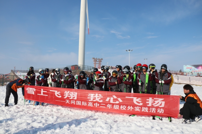 1月8日,天问国际高中学子来到百里荒滑雪场,滑雪、打雪仗、堆雪人,
