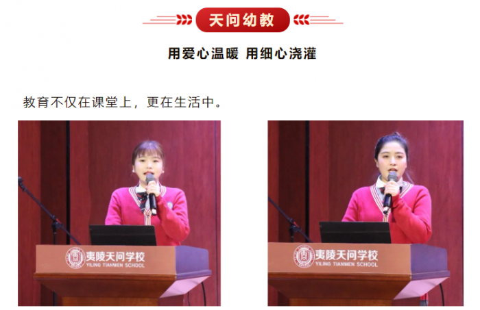 天问托育园教师杨薇、桂玲芃以《最好的开始,最美的遇见》为题,分享了天问幼教在早教领域实现的新突破。从幼儿、家长、教师三个视角,展示了天问早教团队的专业与实力,见证了师生在托育园的成长与蜕变。