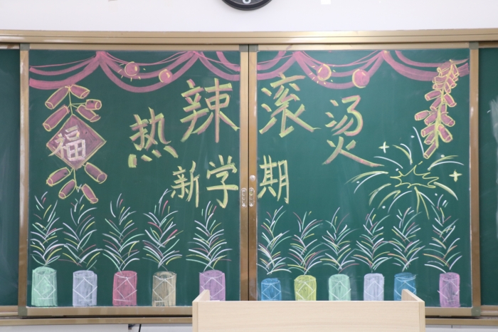 踏入教室,眼前焕然一新。原来是我们的“小红帽”,学生志愿者提前到校擦拭门窗,整理课桌,班主任精心布置黑板报,张贴火红的世界名校对联,让同学们在温馨、舒适的新环境中开启“热辣滚烫”的新学期!
