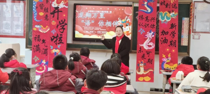 以“龙”元素为引,深度链接语文知识。课堂上,老师生动讲解了龙的文化内涵,拓展天干地支传统文化,并通过诗词、故事等形式,让学生感受中华文化的魅力,激发对语文的兴趣,让学生们在轻松愉快的氛围中开启新学期的学习之旅。