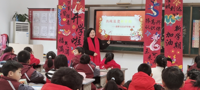 新课改下,英语教学已经成为民族文化传播的关键承担者。英语开学第一课上,老师们带着学生一起探讨“电影《热辣滚烫》的英文名YOLO是什么意思?”“龙年为什么是 the year of long,而不是the year of dragon?”让英语真正走进学生的生活,增强学生的民族文化自信。