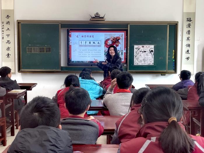 【书法】以“龙”作为开学第一课的主题,讲解有关龙的汉字起源、历史文化和作品鉴赏,让学生感受到生活中书法艺术的魅力。通过新年两部贺岁档《热辣滚烫》和《飞驰人生2》的导入,激发学生在新学期继续保持勤奋好学,勇于挑战的精神,同时也进行了规则和目标的制定,学生参与度高,课堂氛围好,为后续深入学习打下坚实基础。