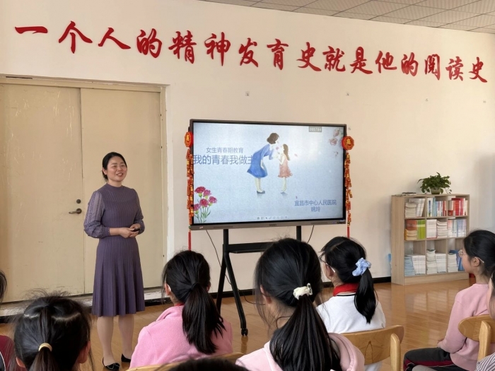现场,李黛代同学的妈妈姚玲,以《我的青春我做主》为题, 开启了女生课堂。这是五年级女生第一次深入认识女性性别,是性别认同的一堂生理卫生课,也是青春期重视自我保护的第一课。