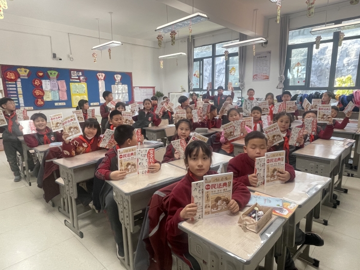 张静书记强调青少年法制教育是全民普法的重要一环,希望同学们不仅认真学习法律知识,更要将其作为日常生活的标尺,用以规范自己的言行,在成长的道路上,能够不断增强自我保护意识和能力,健康平安地成长。随后,张静书记为学生们赠送了《民法典》漫画书和《安全长大》安全教育小百科等法律相关书籍。