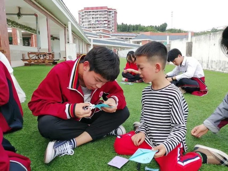 和哥哥姐姐一起做书签