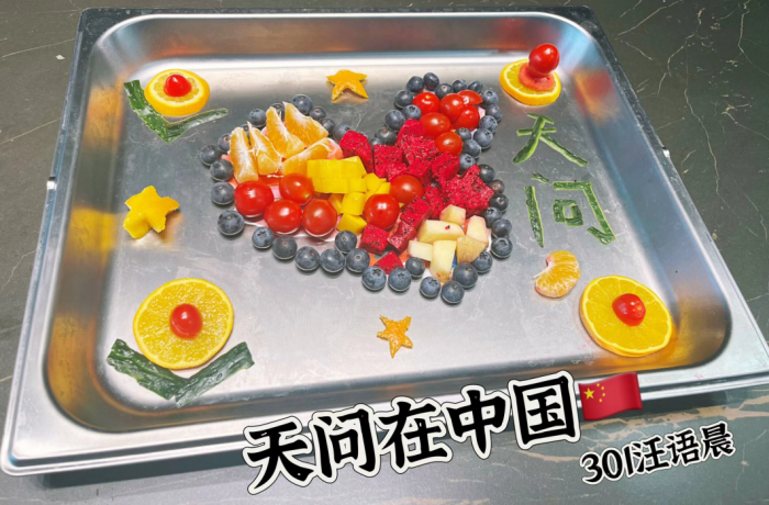 三年级:劳动花开五月天,拼搭水果校庆年。在这个活动中,孩子们用各种水果拼凑出图案,并为它们赋予天问寓意的名字。这一过程不仅锻炼了学生的动手能力,还培养了他们的想象力和创造力,共同庆祝天问20周年校庆。