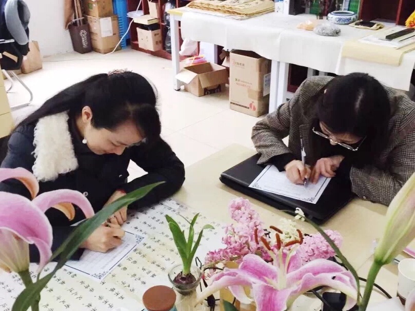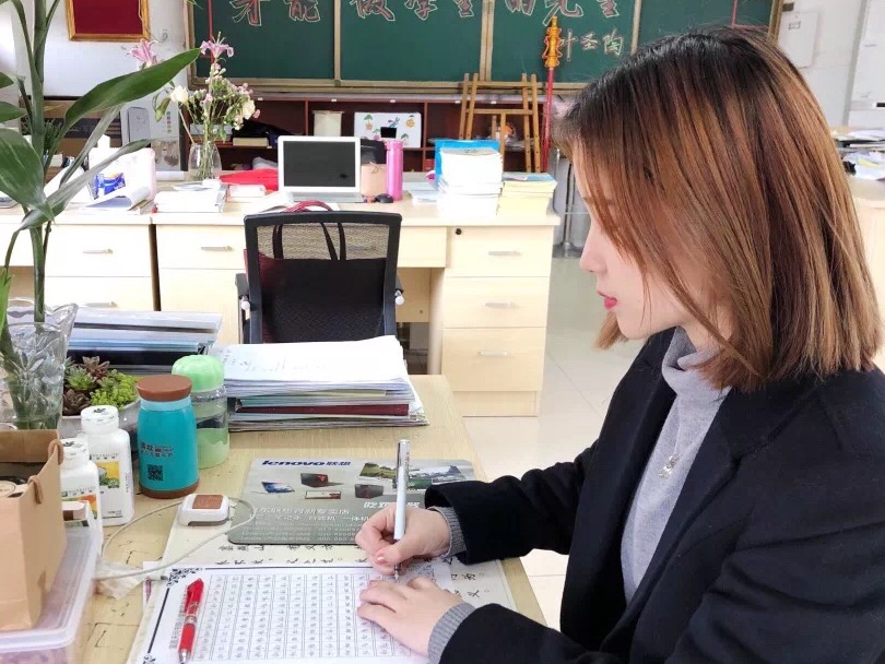 在比赛过程中,教师们认真投入的身影映射出她们对书法的热爱,她们的作品有临习字帖,有精彩原创……反复琢磨,直至写出自己最满意的作品。最后经过综合评定,共有11位教师获奖。