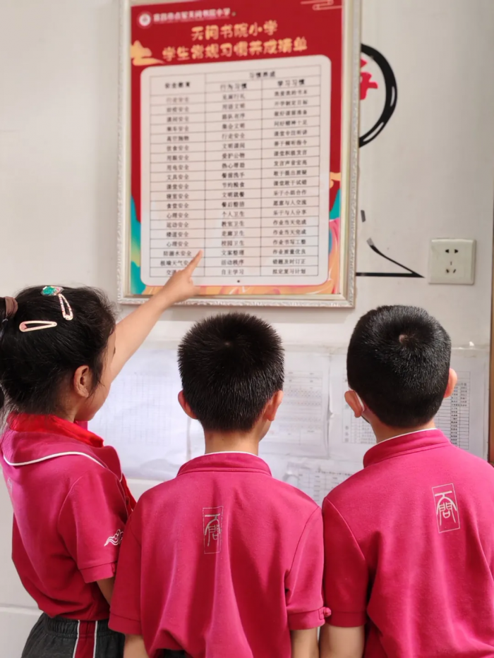 行为形成习惯,习惯决定品质,品质决定命运。小学阶段是培养习惯的关键期。孔子曰: “少成若天性,习惯成自然。”从小养成良好习惯,优良素质便犹如天性一样坚不可摧。天问书院小学坚持开展以“一规一矩养正气,一言一行促成长”为主题的行为习惯养成教育系列活动。以日常行为规范达标活动为载体,从学生的养成教育入手,以多种有效方式加强学生良好行为习惯的培养。