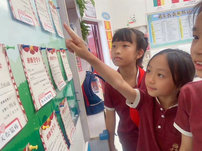 在304班,每个学生都是班干部,班级设立了一个个既有意思又有意义的岗位:“情绪管理员”要安慰情绪低落的伙伴,安抚情绪激动的同学;“班牌管理员”每天轮换,放学时带队并举班牌;还有电灯管理员、流浪文具管理员、眼操小天使、卫生小卫士、图书管理员……这些小岗位充分调动了学生的积极性,在班内形成了“人人有事做,事事有人管”的和谐氛围。