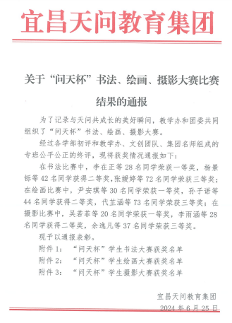 关于“问天杯”书法、绘画、摄影大赛比赛结果的通知