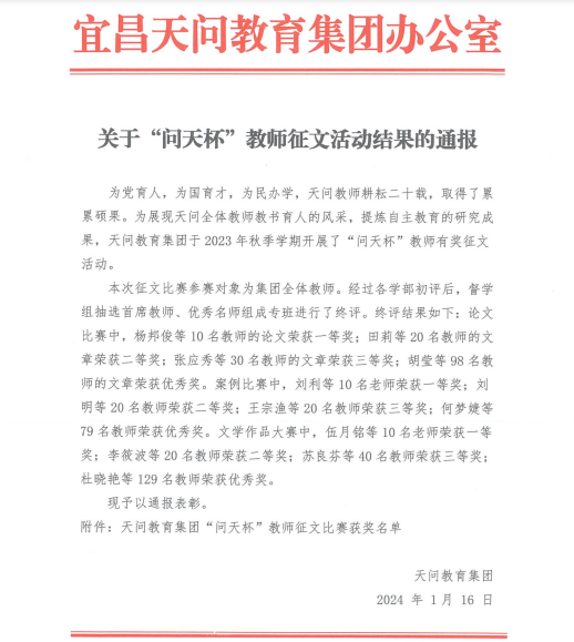关于“问天杯”书法、绘画、摄影大赛比赛结果的通知