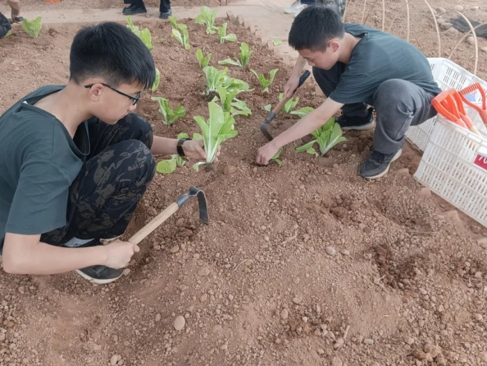 此次活动中同学们换上军装,体验了以内务整理、队列训练等为主要内容的习惯养成课程。 体验了以气象观测、地震避险、消防安全、防溺水等为主要内容的生命安全课程。 体验了以航模、物联网、机器人、人工智能等为主要内容的科技创新课程。 体验了以百米定向、共建城池、七巧板为主要内容的团队拓展课程。 为了发挥劳动育人功能,培养学生正确的劳动价值观和良好的劳动品质,研学第五天上午,同学们前往嘉馥农场,进行半天的集知识、趣味于一体的学农社会实践活动。 在此次活动中,同学们不仅学习了农耕技巧,领略了农事的辛苦,还参与了拓展活动白菜种植。更重要的是,在劳动过程中,同学们培养了团结协作、积极进取、坚韧不拔的精神品质,并深刻领悟到劳动的意义与价值。 学本领健全人格,保家国任重道远,学生代表、教师代表分别进行了发言,青校领导最后对本次活动进行总结,希望我们牢记各项基本军事技能,发扬在实践训练中养成的优良作风,树立坚定的信念,以十足的信心迎接未来的学习。 此次研学活动,进一步弘扬了中国精神,激励青年学子开拓进取、勇往直前。研学是课堂的拓展途径,是奔赴“诗和远方”的生动实践。经历是最好的学习,研学是最美的相遇。