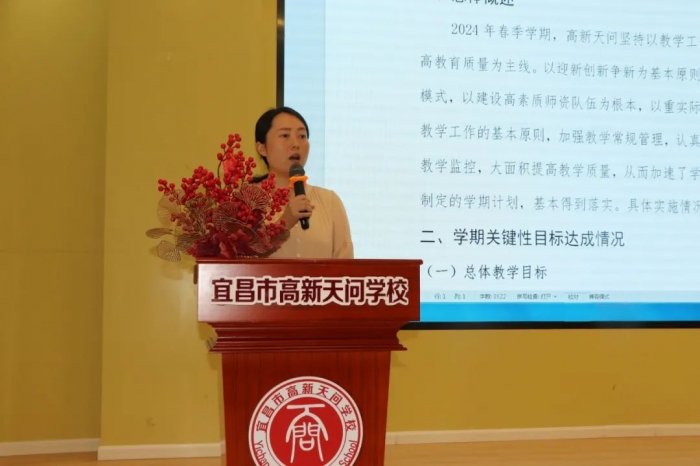 教务处赵姝主任回顾总结了本学期的教务工作成果:2024年春季学期,高新天问坚持以教学工作为中心,以全面提高教育质量为主线。以迎新创新争新为基本原则,极力推行绩效管理模式,以建设高素质师资队伍为根本,以重实际,抓实事,求实效为教学工作的基本原则,加强教学常规管理,认真落实课程计划,抓好教学监控,切实提高教学质量,在本学期的中会考及高新区调考中,新初学子均取得优异成绩。回顾学期初制定的学期计划,基本得到落实。