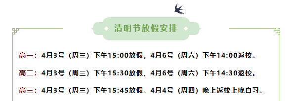 夷陵天问学校高中部2024年清明节放假通知