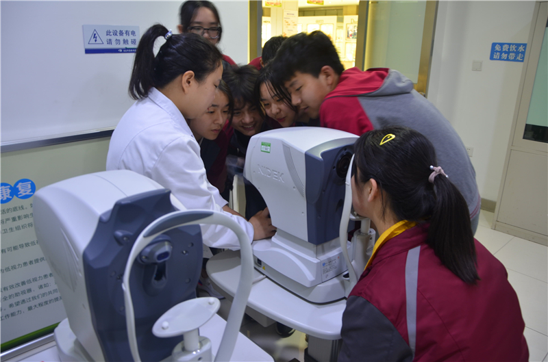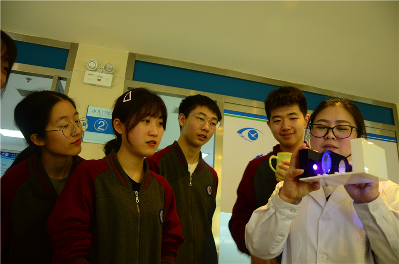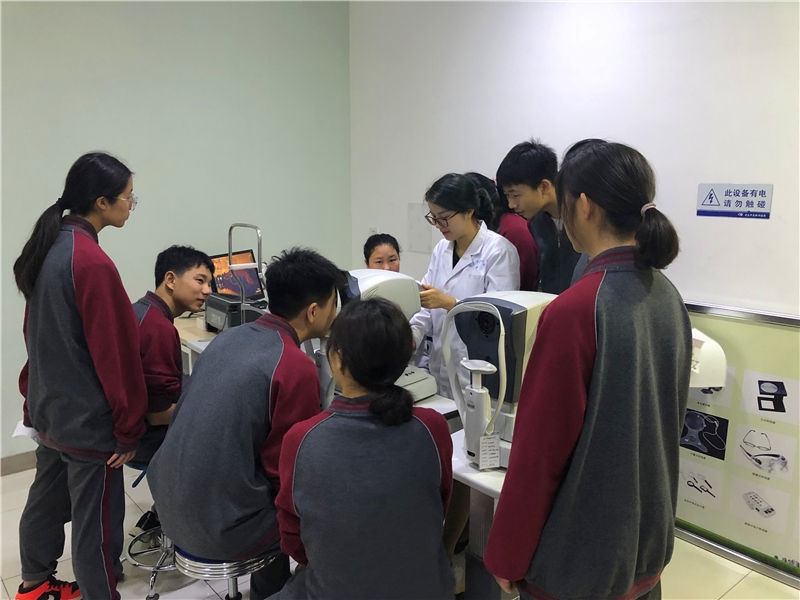 2019年4月26日上午,天问国际高中31名学生参加了“眼科医生体验”社会实践活动,每位学生进行了视力筛查,验光,眼轴眼压测量,眼睛按摩及干眼熏蒸等体验,并获得了一份自己的眼睛状况报告,同时,自己亲身体验眼科医生角色,学会基本眼科检查仪器操作。医生对如何保护眼睛还做了专业讲解和建议,让同学们深切体会到节约用眼的重要性,在平时的生活学习中保护好自己的眼睛。
