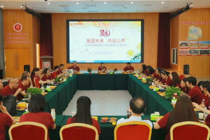 金秋重阳日,教育话初心。 当天,集团分别在天问高中五峰校区和秭归屈子书院举行座谈会,畅谈教育初心,新老接力传承,为天问发展提供精神动力。 在天问高中五峰校区,近20位银龄教师欢聚一堂,共度佳节。