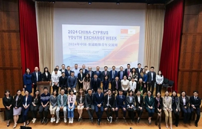 10月22日至25日,驻塞浦路斯使馆联合中塞友城联盟轮值主席南京市政府、塞教育部、拉纳卡市政府、塞欧洲大学、塞驻华使馆等成功举办2024年中国-塞浦路斯青年交流周暨第三届中塞青年论坛。来自南京、青岛、宁波、广州、西安、福州、渭南、宜昌、新疆9省市及来自塞政党等各界别青年代表60余人围绕文明互鉴、数字转型、绿色发展分议题深入交流,并发布《中国-塞浦路斯青年尼科西亚宣言》。