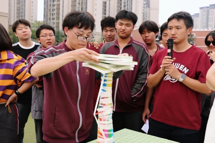 随后,同学们先后开展了纸飞机、吸管塔、水火箭、人体五子棋比赛。 大家分组合作,在一次次的思维碰撞中,确定方案、动手实践、总结分析,理论与实践相结合,探究现象背后的科学原理,点亮科技创新的激情和兴趣。