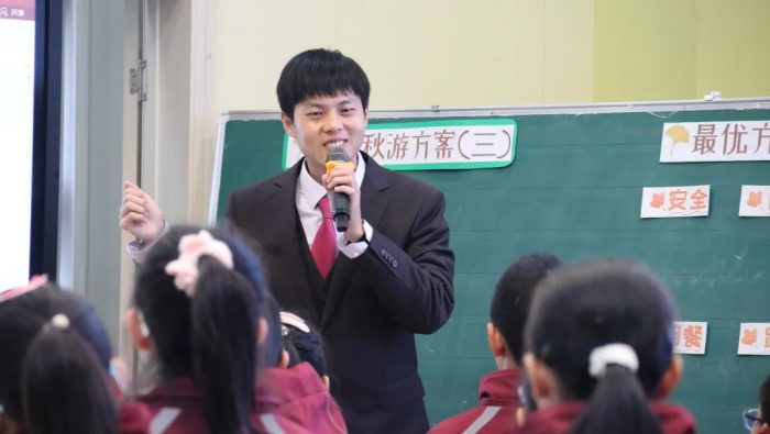 在课堂观摩环节,宋俊剑老师执教《设计秋游方案(三)》,本课属于跨学科综合实践活动。学生在“设计秋游方案”完整三课时的实际情境和真实问题中,综合运用所学数学知识和历史、地理、民俗、摄影、信息技术等其他学科的知识与方法解决问题。以跨学科学习和项目化自主学习的方式,培养学生的创新思维和合作意识。