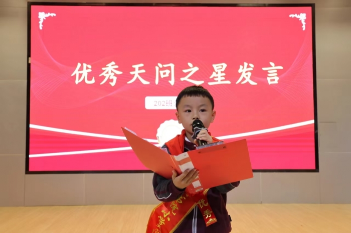 在11月14日举行的“志当凌云不负年少”期中颁奖典礼上,100名受表彰的同学佩戴红花绶带,站上光荣的舞台,接受了仪式感满满的表彰颁奖他们是践行自主发展的“天问之星们,是学习有热情、有方法、有成果的“书院大学士”们,是常规好、习惯好、品德好的“书院美少年”们,还有在劳动、阅读、国学、体育、文艺、书法、口才这七个领域表现优异的达人们。