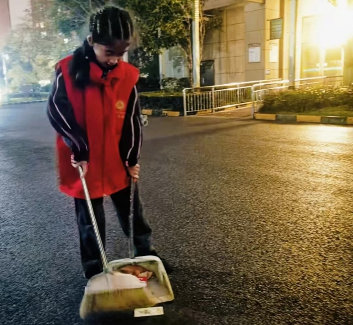 天问书院小学学子们利用课余休息时间,开展了“爱心清扫,情暖冬日”志愿服务活动,为维护社区环境卫生贡献一份力量。